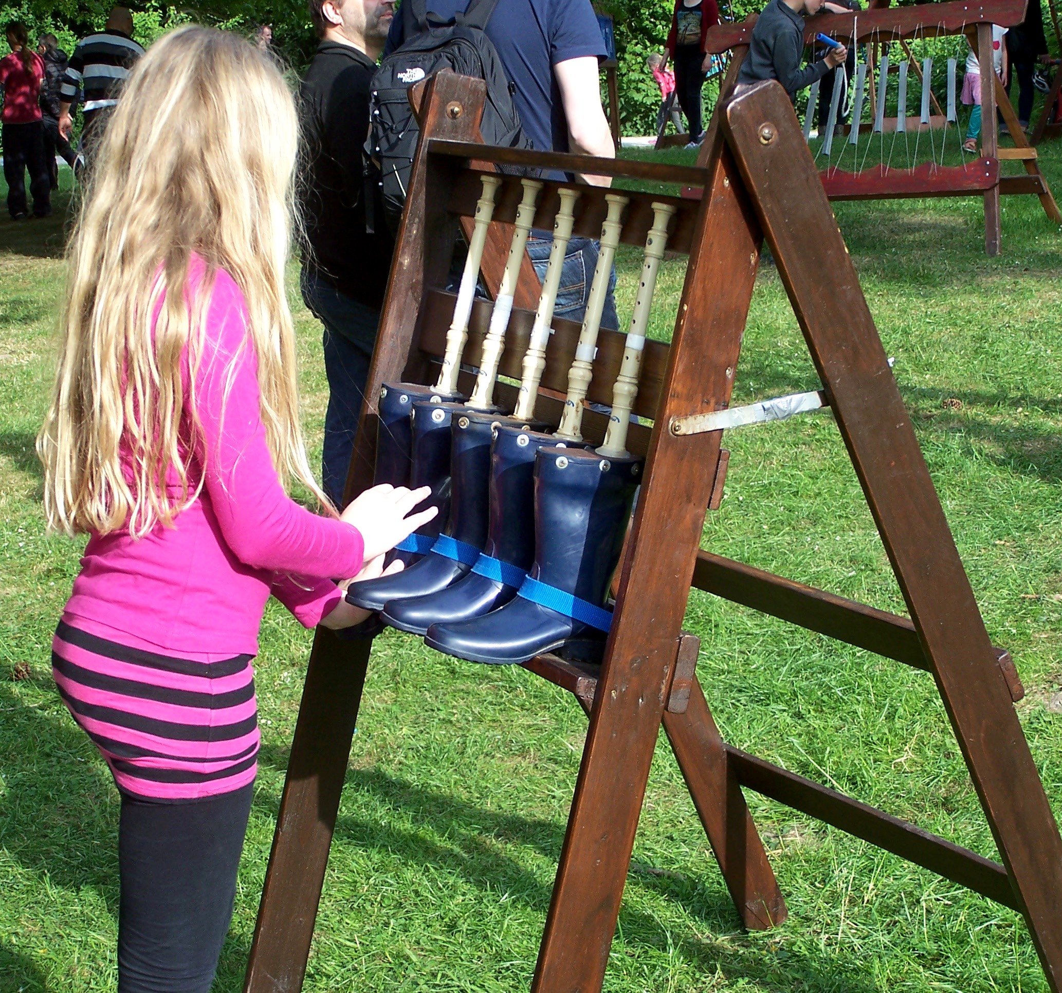 Riesenholzharfe, Stiefel-Flöten, Besenräder, Elefantenklavier, Klanglabyrinth, Riesen-Klangräder …