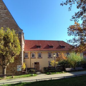 Herzlich Willkommen zu unserem Klostercafe in der Oberkirche mit Blick zum neu gestalteten Kreuzhof.